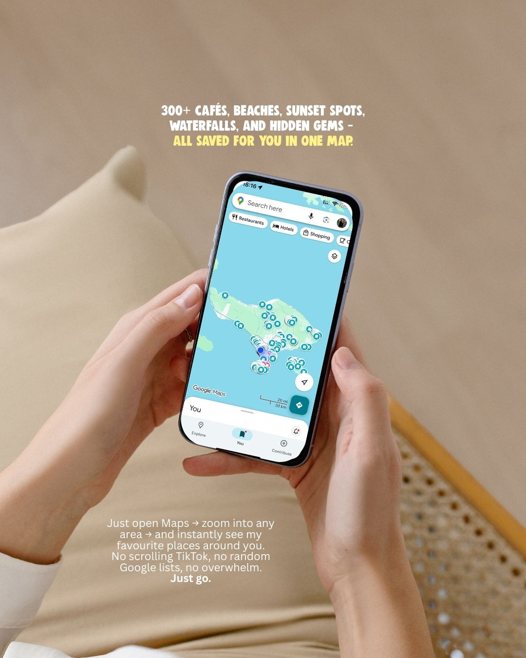 You open Maps, see what’s around you, and instantly find cute cafés, sunset spots or things to do - without scrolling TikTok or getting overwhelmed by Google.